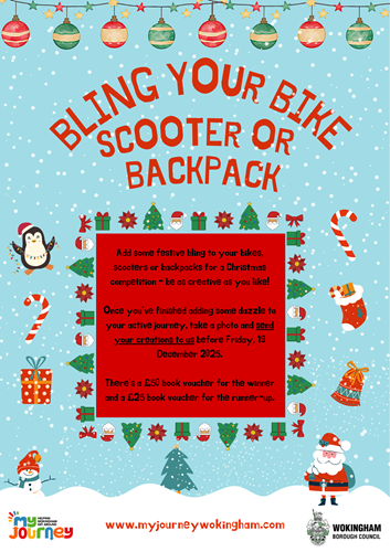 We're asking pupils to add some festive bling to their bikes, scooters or backpacks for a Christmas competition - be as creative as you like!