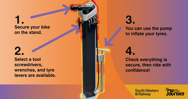 Wokingham, Winnersh and Winnersh Triangle stations feature convenient bicycle repair stands. They make it easy to cycle to and from the station, without the stress of a flat tyre holding you back.